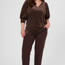 Stilfuld bluse i blød velour med elegante lodrette striber, der giver et smukt og slankt udtryk. Den varme brune nuance tilfører et sofistikeret look, som både kan styles til hverdag og fest.