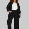 Bukser med vidde, sidelommer og elastik i talje og lægdetaljer foran