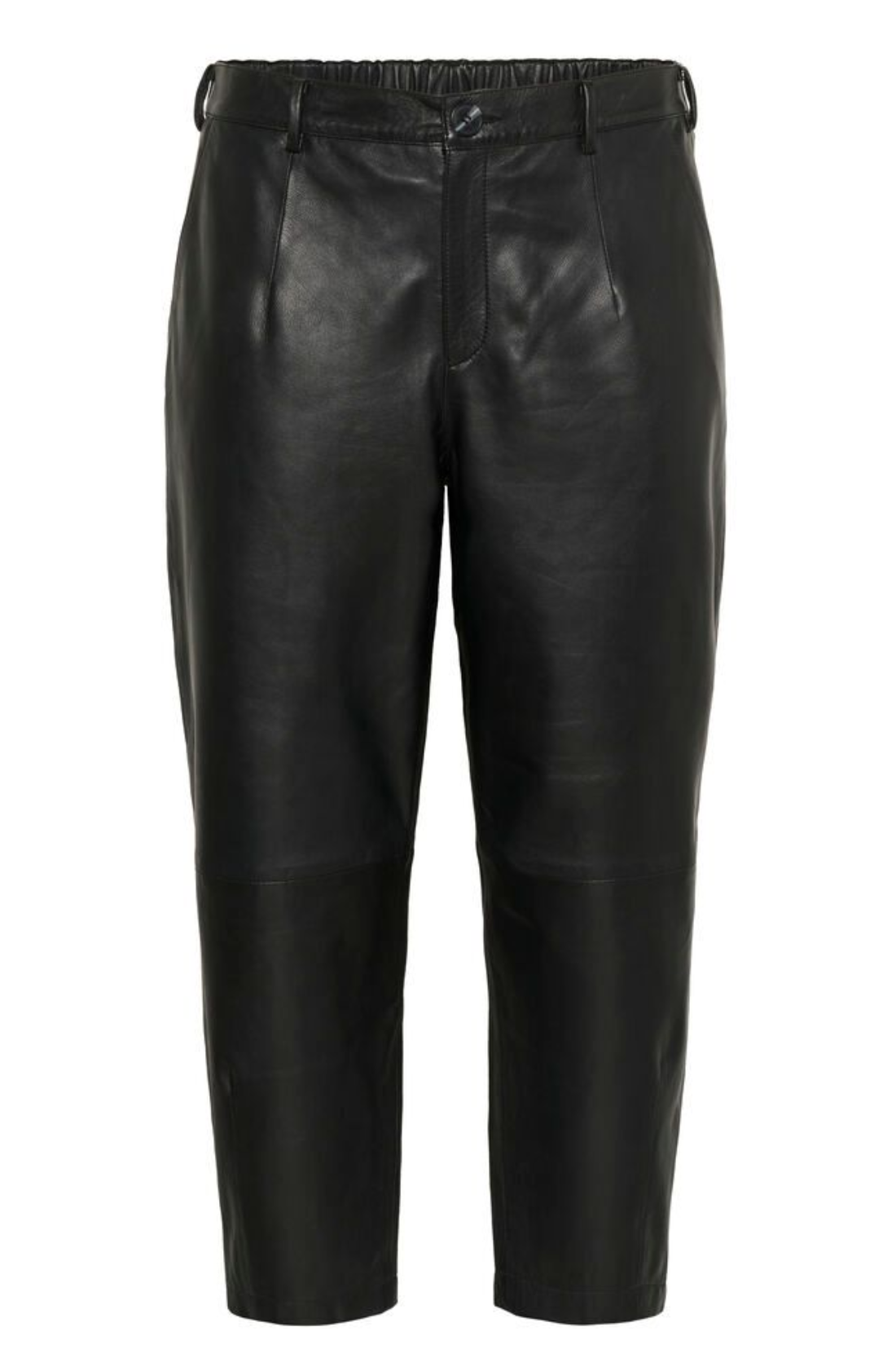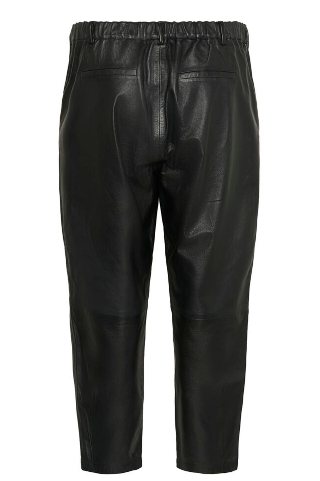 Disse eksklusive skindbukser er fremstillet i blødt lammeskind, der giver en luksuriøs følelse og et elegant udtryk. Pasformen er let afslappet. Klassiske lommer foran og bagpå, bæltestropper samt lynlås- og knaplukning. Bukserne har 7/8 længde og har elastikdetalje bagpå for ekstra bevægelsesfrihed