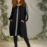 Denne lækre, løstsiddende kjole kombinerer komfort med et moderne, sporty udtryk. Kjolen er sort med elegante vertikale striber i hvide og mintgrønne nuancer, som både slanker og giver et frisk, grafisk look.