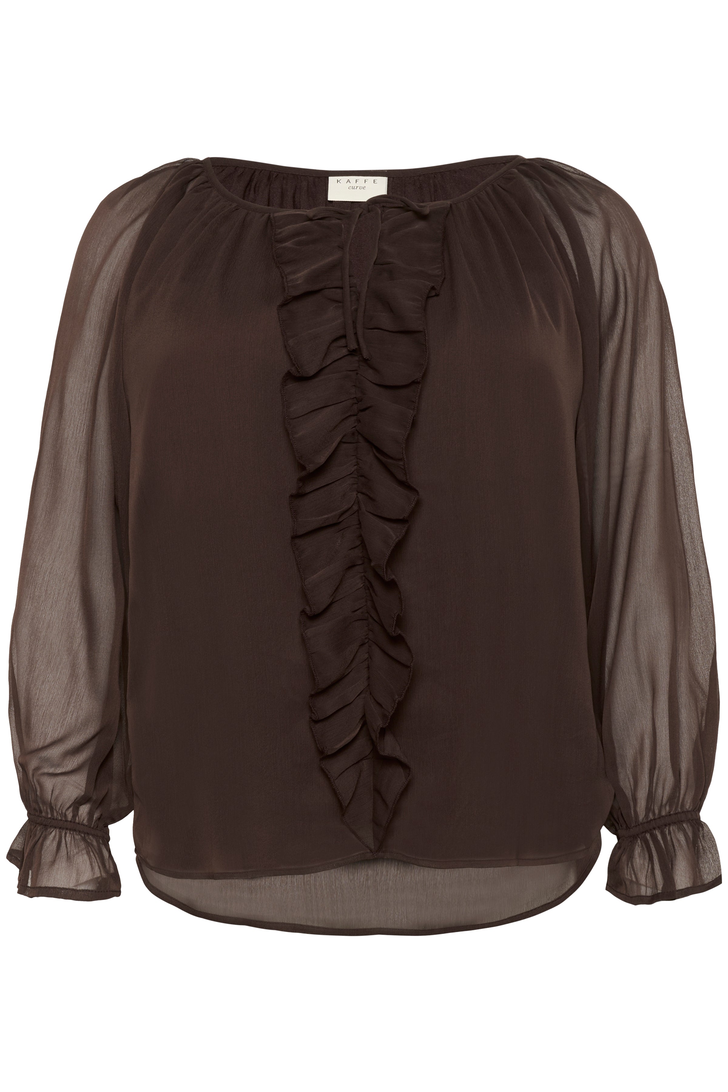 Feminin og elegant bluse i en smuk dyb brun nuance. Blusen er designet i let chiffon, som giver et luftigt og eksklusivt udtryk. Fronten er prydet med en lodret flæsekant, der tilføjer et romantisk og sofistikeret touch.