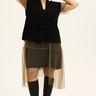Den har en åben front med to dekorative sløjferknapper som giver et feminint og unikt twist. Den løse pasform gør den let at style over både kjoler, skjorter eller en simpel T-shirt, og den sorte farve gør den tidløs og let at kombinere med resten af garderoben.
