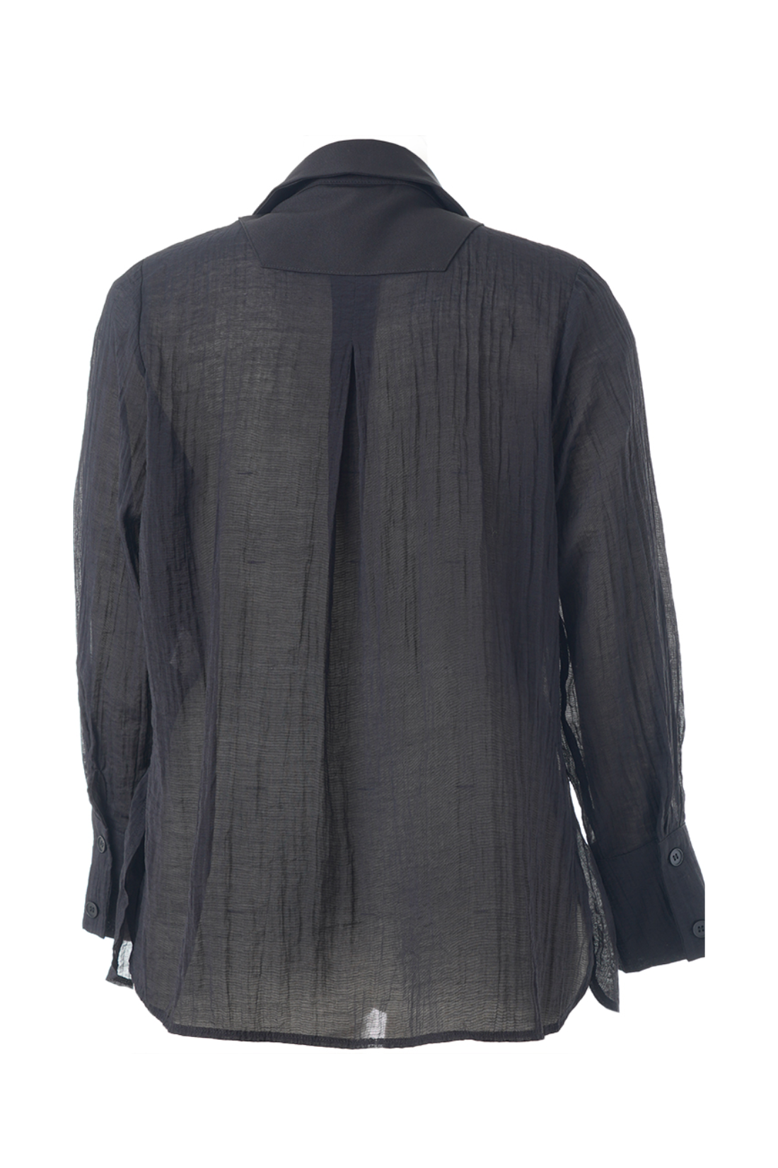 En let og elegant blazer med et moderne twist. Denne model har lange ærmer i gennemsigtigt stof, der giver et feminint og eksklusivt udtryk. Foran lukkes den med et bindebånd, hvilket skaber et afslappet og stilfuldt look.