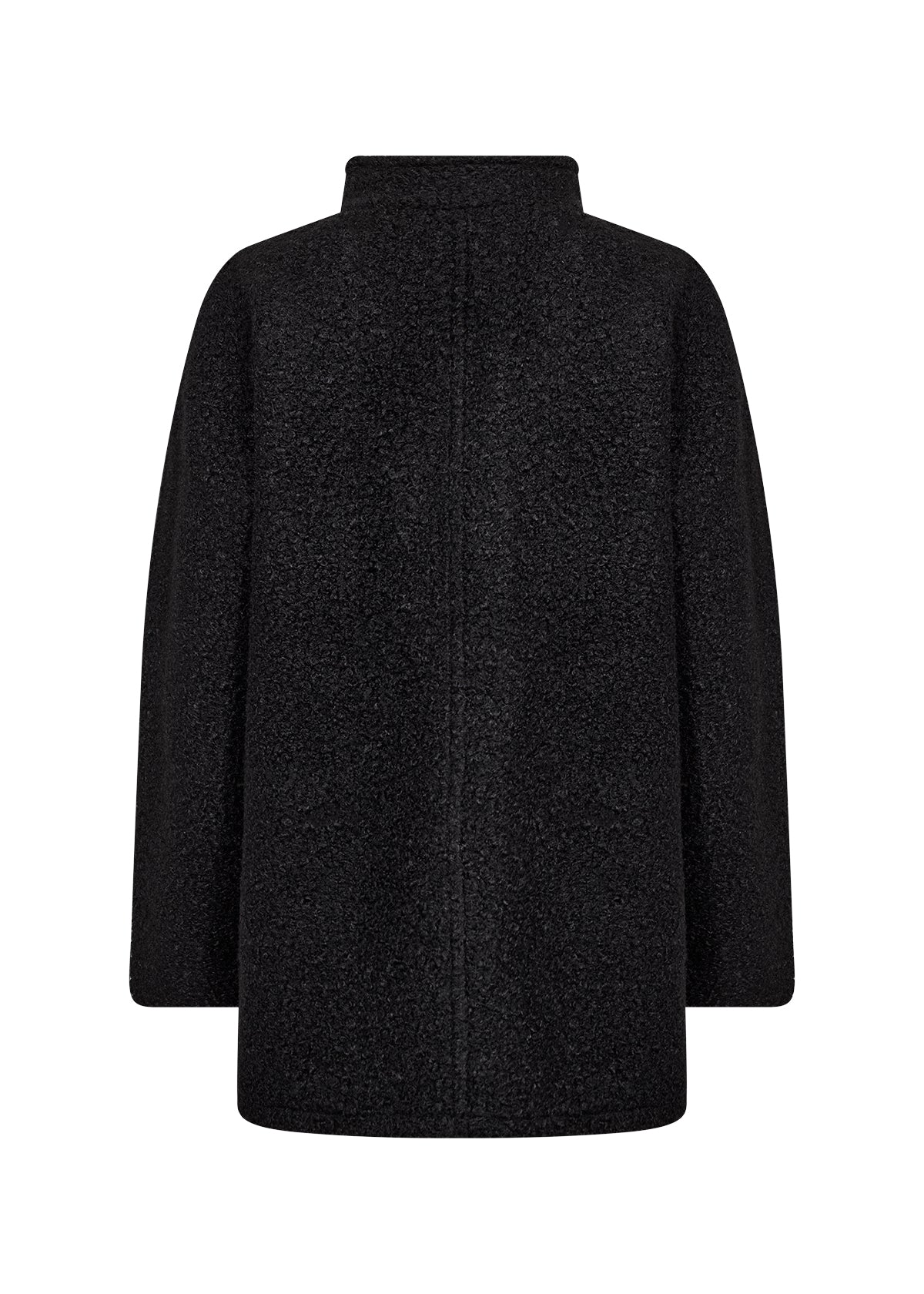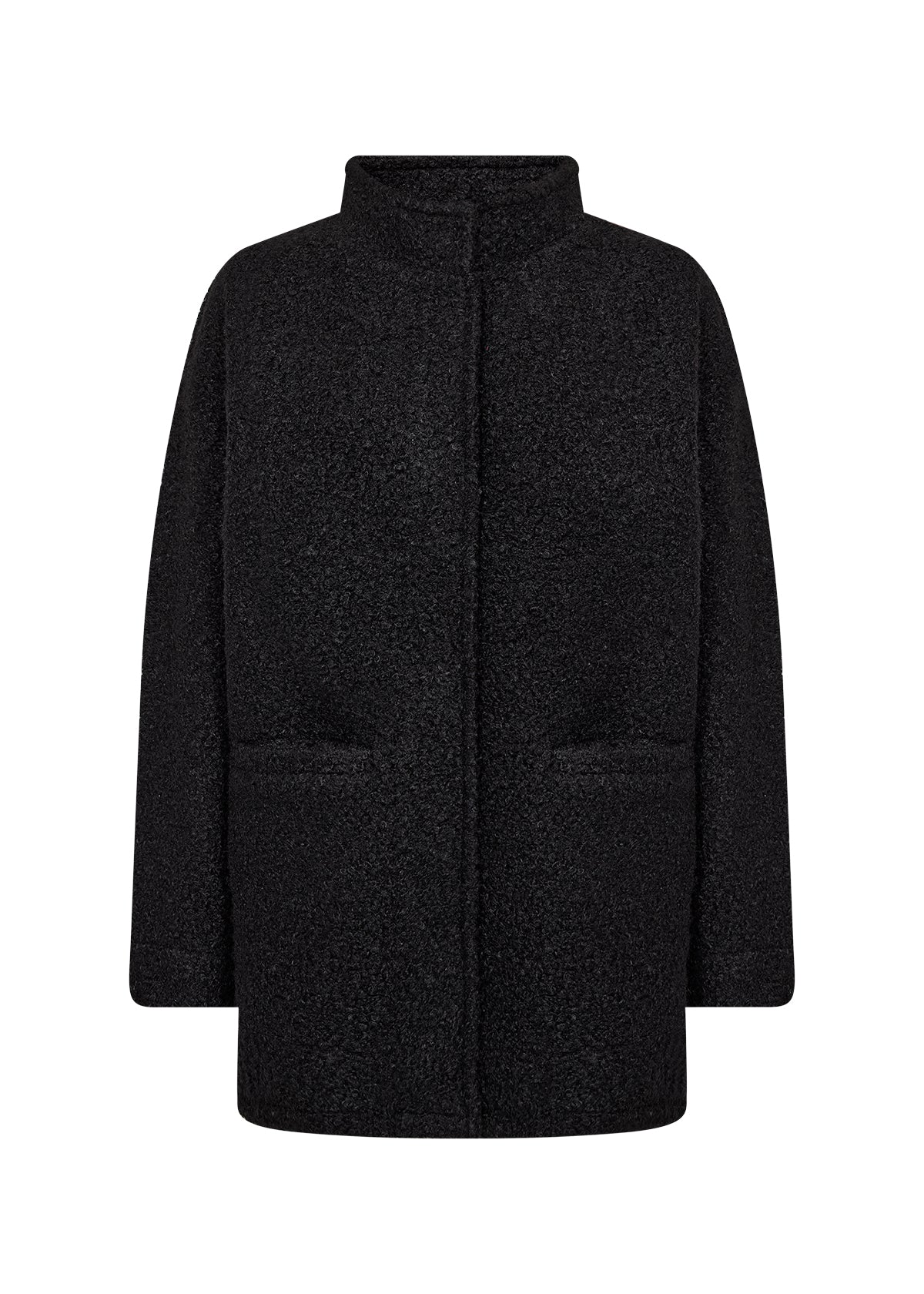 WA-LUCY 3 er en jakke fremstillet af 100 % genbrugspolyester. Den har en høj krave, skjulte knapper, medium længde og et struktureret stof. Sæt den sammen med skræddersyede bukser og støvler for et elegant look.